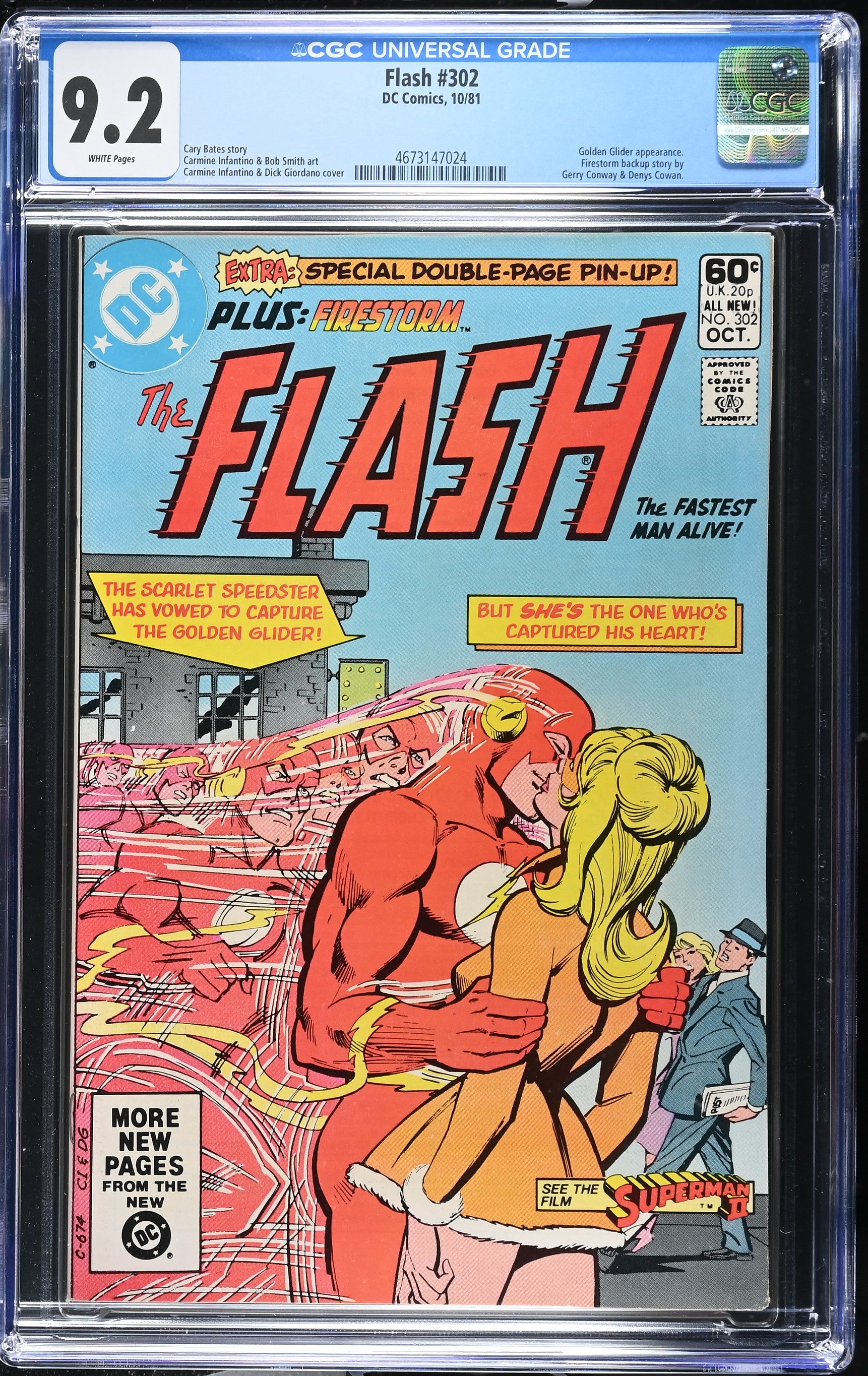 Flash #302 from 10/81 offers a glimpse into the era's iconic storytelling. Featuring golden glider appearance., firestorm backup story by, gerry conway & denys cowan., this issue is a must-have for collectors. Add this CGC 9.2 graded comic to your collection today!