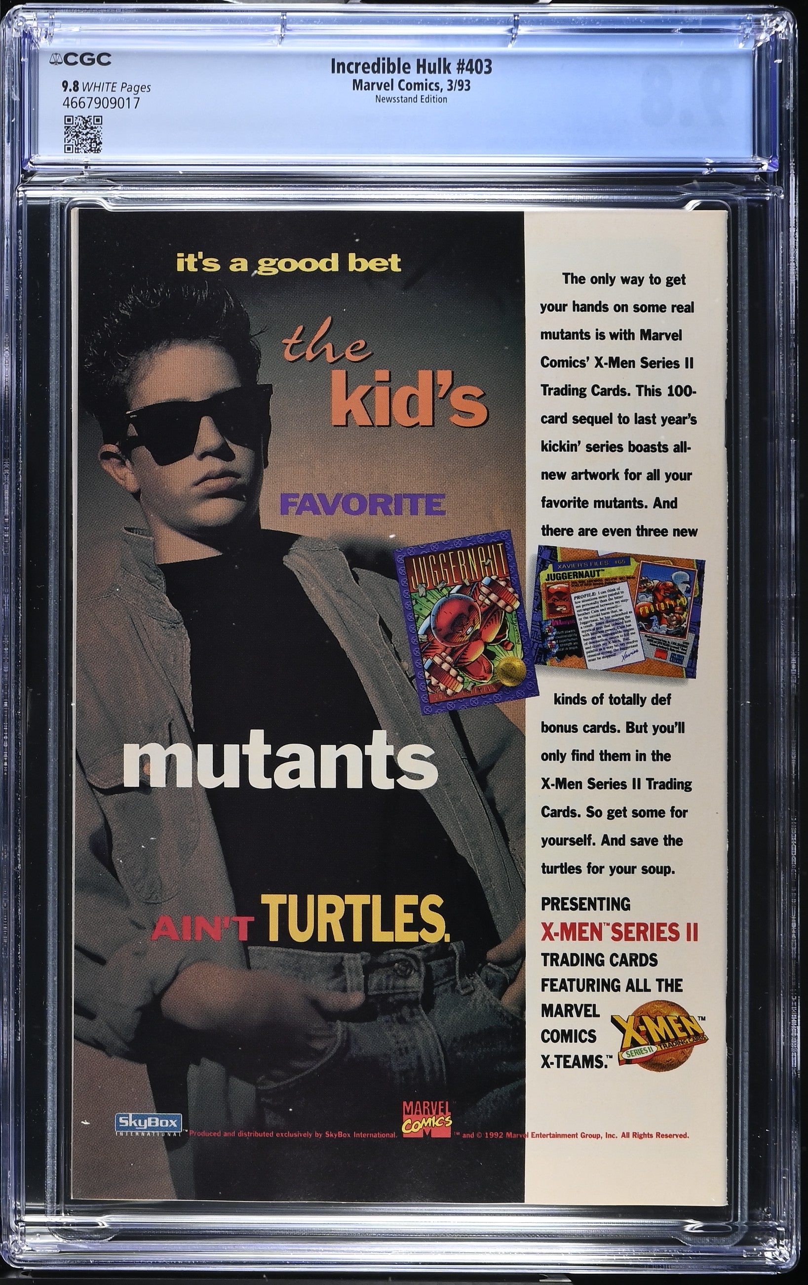 Incredible Hulk #403 from 3/93 offers a glimpse into the era's iconic storytelling. Featuring red skull, juggernaut, mentallo &, avengers (hercules, vision, crystal,, sersi & black knight) appearance., this issue is a must-have for collectors. Add this CGC 9.8 graded comic to your collection today!