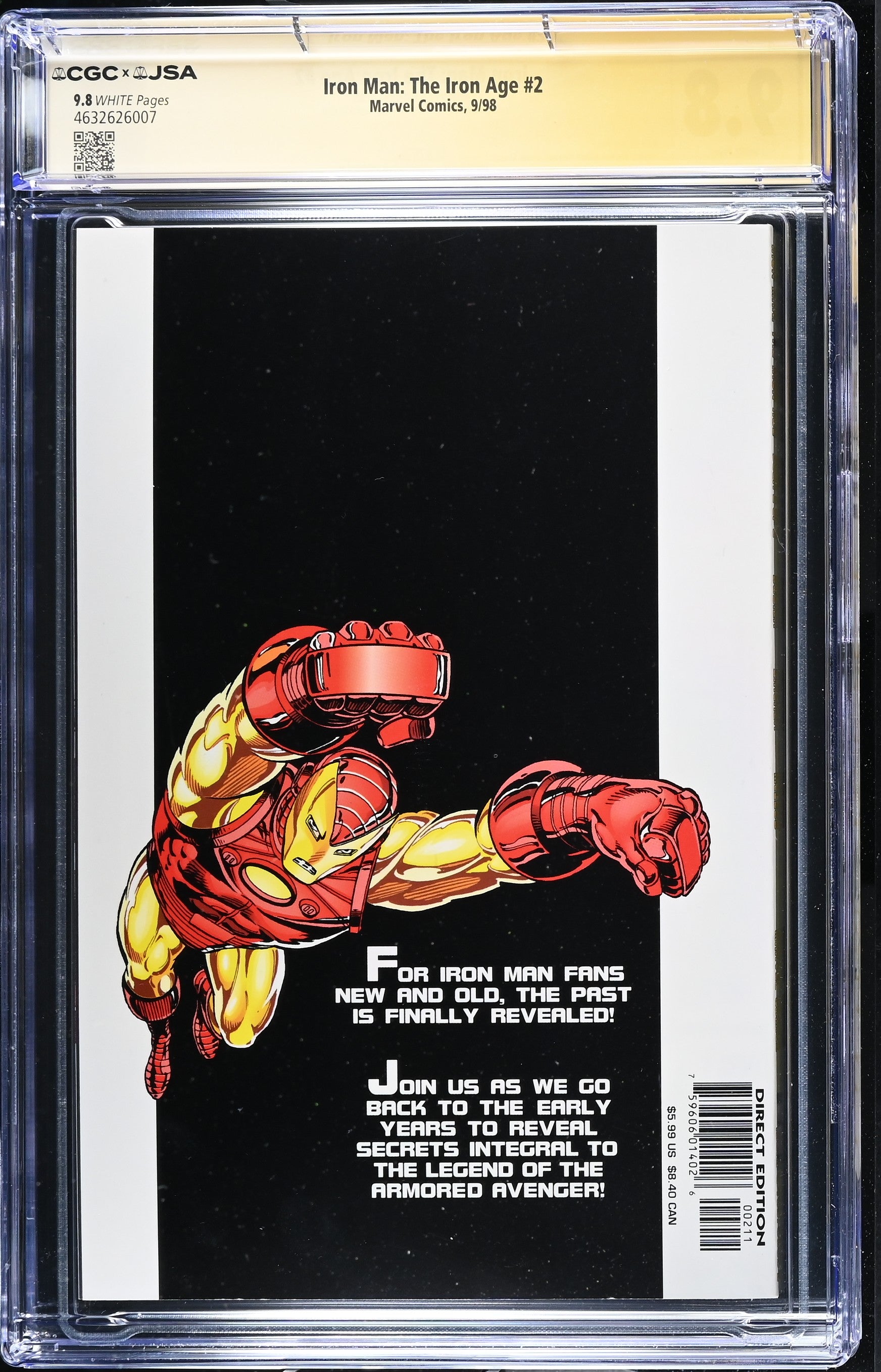 Iron Man: The Iron Age #2 from 9/98 offers a glimpse into the era's iconic storytelling. This issue is a must-have for collectors. Add this CGC 9.8 graded comic to your collection today!