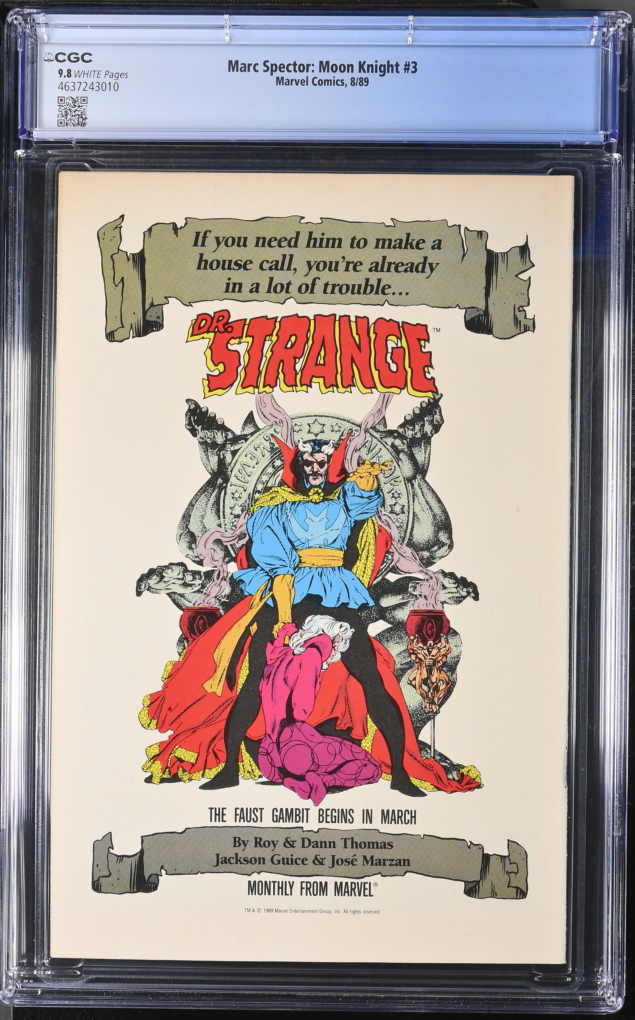 Marc Spector: Moon Knight #3 from 8/89 offers a glimpse into the era's iconic storytelling. This issue is a must-have for collectors. Add this CGC 9.8 graded comic to your collection today!