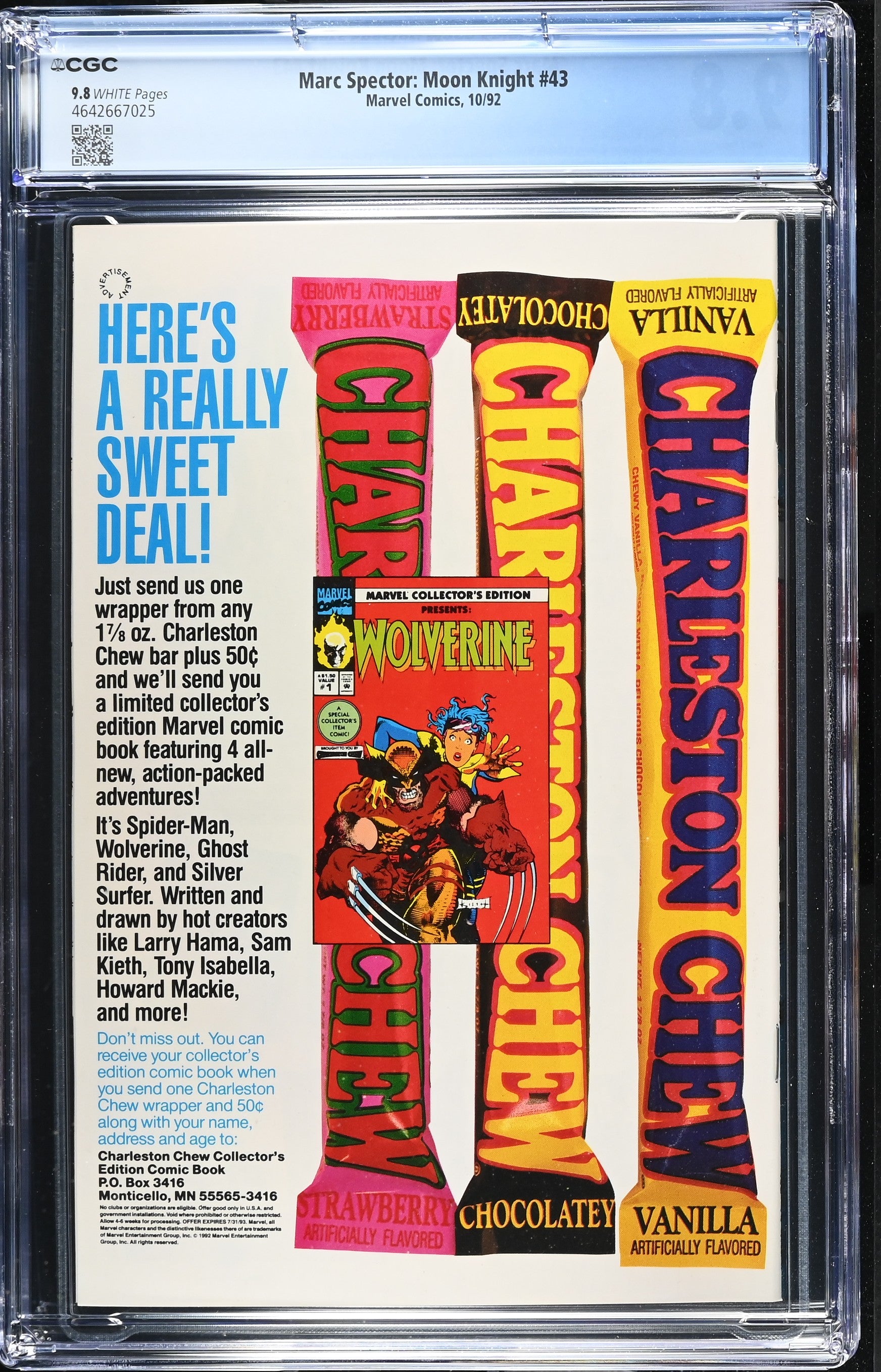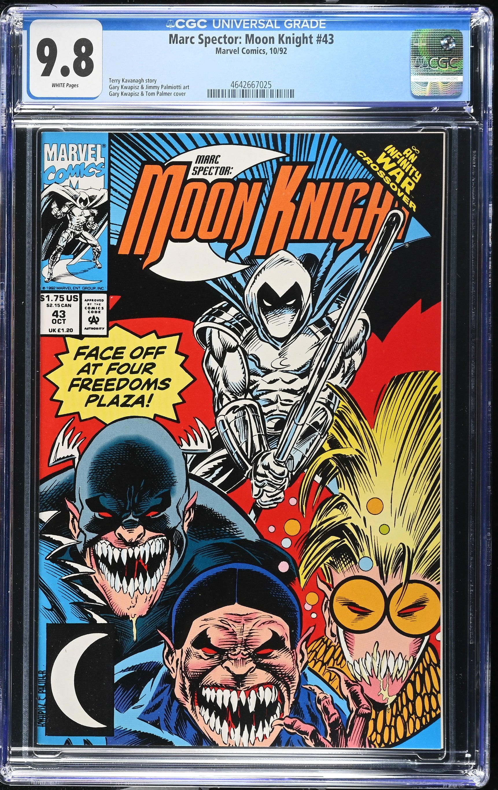 Marc Spector: Moon Knight #43 from 10/92 offers a glimpse into the era's iconic storytelling. This issue is a must-have for collectors. Add this CGC 9.8 graded comic to your collection today!