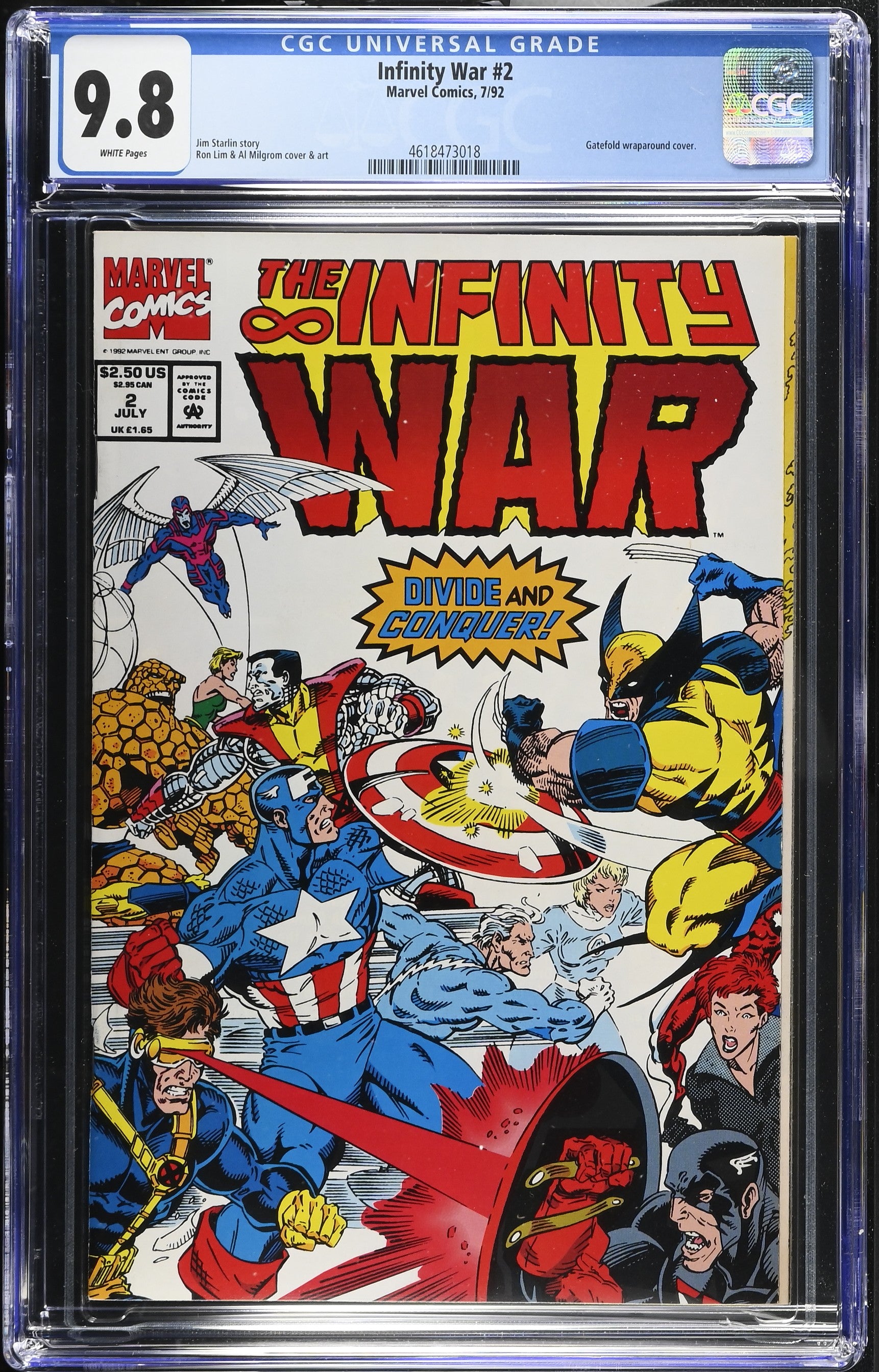 Infinity War #2 from 7/92 offers a glimpse into the era's iconic storytelling. Featuring gatefold wraparound cover., this issue is a must-have for collectors. Add this CGC 9.8 graded comic to your collection today!