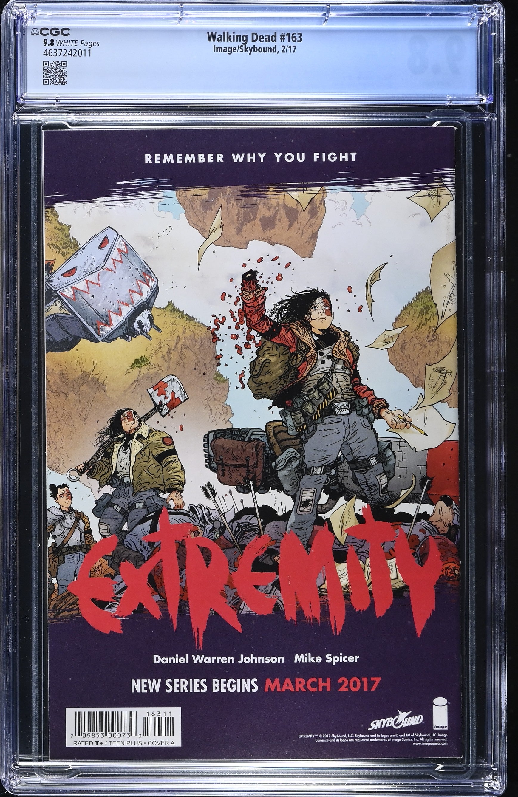 Walking Dead #163 from 2/17 offers a glimpse into the era's iconic storytelling. Featuring "death" of paula., 25� issue., 5 page "extremity" preview., this issue is a must-have for collectors. Add this CGC 9.8 graded comic to your collection today!