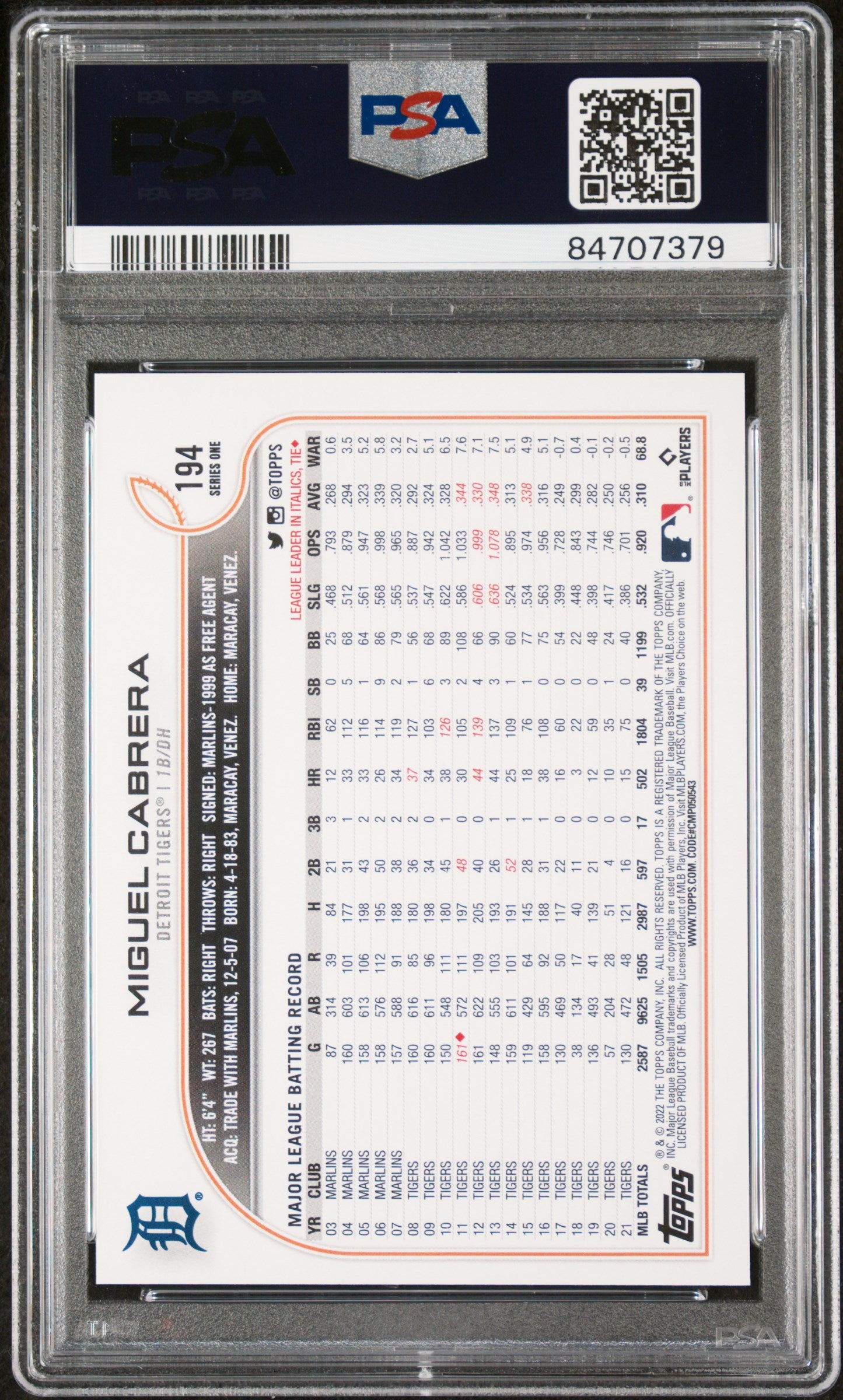 2022 TOPPS COMPLETE SET MIGUEL CABRERA GOLD STAR #194 - PSA 10