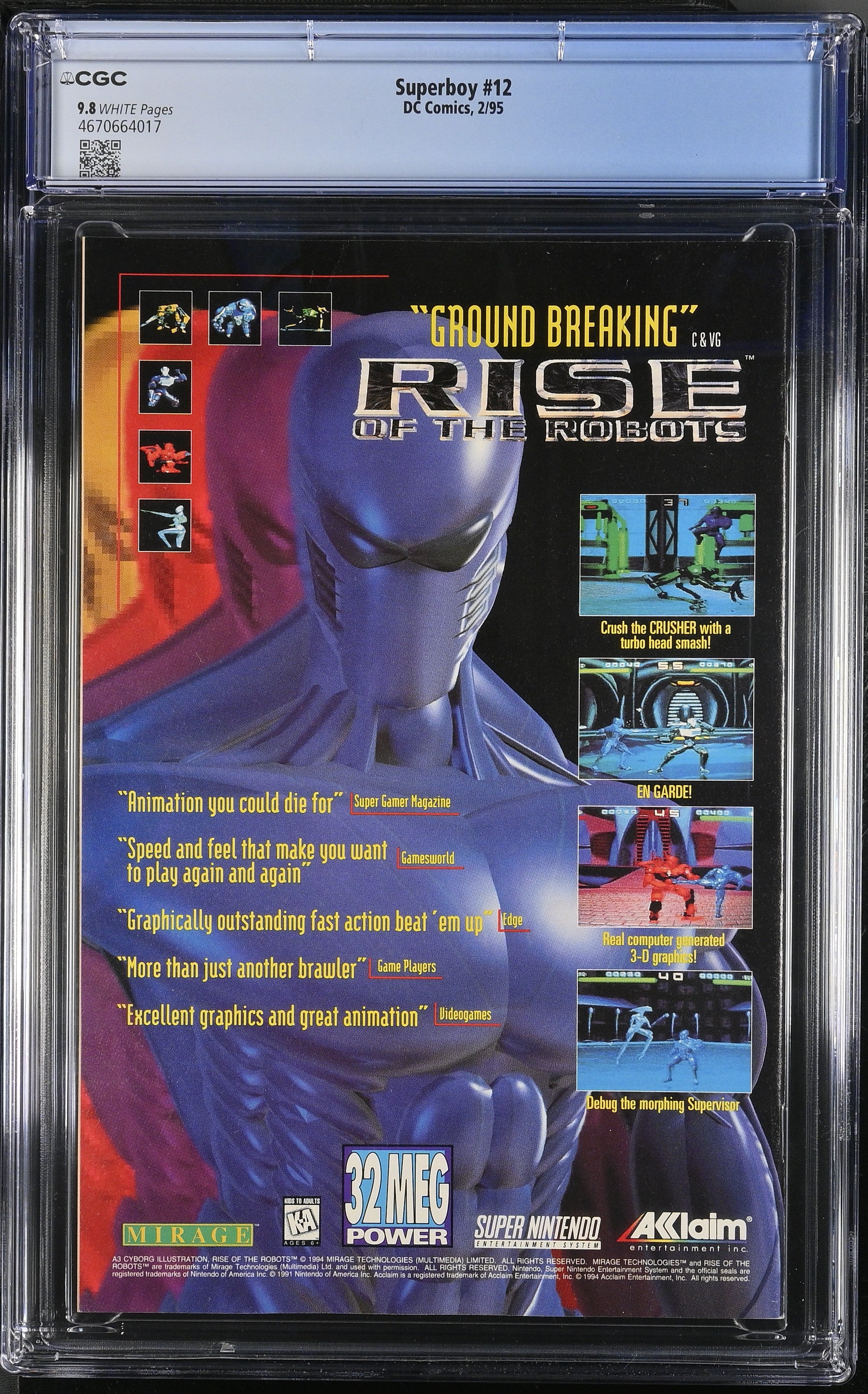 Superboy #12 from 2/95 offers a glimpse into the era's iconic storytelling. This issue is a must-have for collectors. Add this CGC 9.8 graded comic to your collection today!
