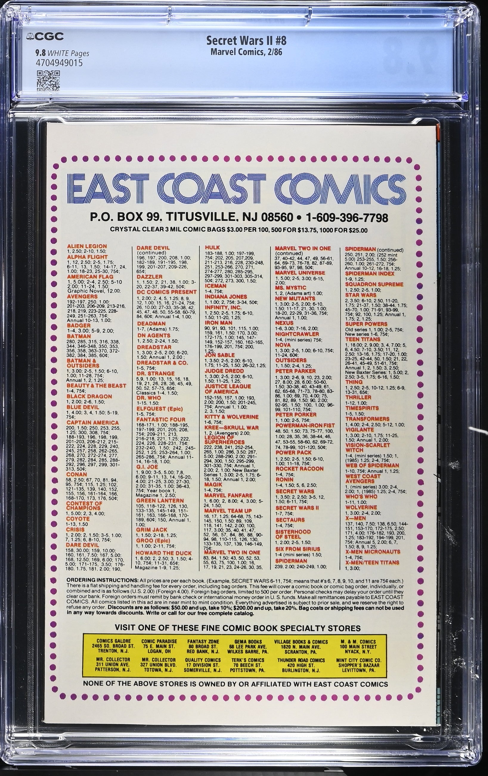Secret Wars II #8 (2/86) Graded CGC 9.8