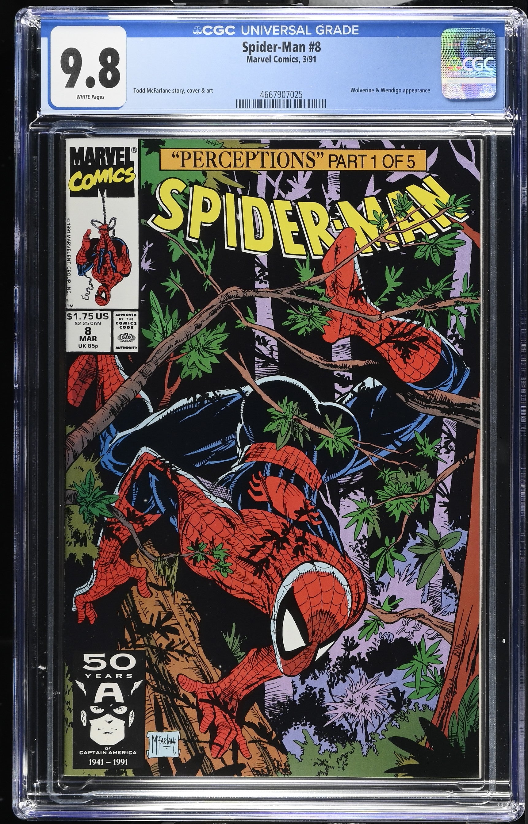 Spider-Man #8 from 3/91 offers a glimpse into the era's iconic storytelling. Featuring wolverine & wendigo appearance., this issue is a must-have for collectors. Add this CGC 9.8 graded comic to your collection today!